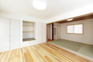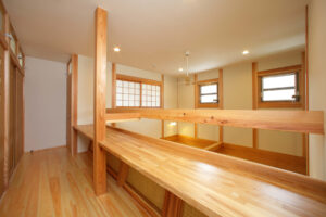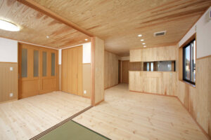 施工事例集 新築:大屋根の木の家 大屋根のあたたかな木の家 居間と和室がゆるやかにつながり 木とともに過ごす、穏やかな暮らし 新築:心地よい木肌の家 周囲と調和する色彩 屋内に高さ方向の余地を持たせた構造 自然材の使用と日照条件が、やわらかな印象を生む 新築:陽だまりナチュラルハウス 橙調と白基調による陽だまりのような外観床座を前提とした余裕ある一室を確保 木質量を高めた内装により、自然な匂いが残る 新築:無垢と暮らすシンプルな家 淡い砂色でまとめた外装仕上げ装飾を抑えた構成により、素材そのものが際立つ木質要素を日常に取り込み、簡潔な住環境を形成 新築:やさしい木のぬくもり邸 内部に木の量感を持たせた住宅計画外観はベージュ系で統一し、やさしい佇まい日常生活に自然素材の感触を取り込んでいる 新築:うつろいを楽しむ木の住まい 清潔感のある白系外観が全体印象を整える内側は木を主体とした仕上げで素材の差異を楽しめる暮らしの中で風合いが深まる設計 新築:くらしを包む大屋根の家 大きな屋根が家族の暮らしをやさしく守る住まい 光と風を取り込み、のびやかな室内空間を実現 日常を穏やかに包み込む安心感のある設え 新築:ぬくもりを重ねる家 木の質感と光が、空間にやさしい表情を添える 家族の時間が自然と重なり心地よく過ごせる設え 住まうほどに愛着が深まる、あたたかな住まい 新築:そよぐ木の家 木の香りと光に包まれた、心地よい住まい 風が通り抜け、四季を感じながら暮らせる空間 家族の時間が自然体で流れるやさしい日常 新築:寛ぎを深める家 光と素材が調和する、静かで落ち着いた空間 家族それぞれが心からくつろげる、やさしい設え 日常の疲れをほどく、安らぎのある住まい 新築:CALM HOUSE 家族みんなが自然と集まる、穏やかな住空間 光と木の温もりが毎日の暮らしをやさしく包む 成長に寄り添い安心して過ごせる家族の住まい 新築:WOOD LIVING 焦茶の木質と白い壁が織りなす、落ち着きのある空間 ウッドブラインド越の光が静かな陰影を描く 大人の時間をゆったりと味わえる、上質な暮らし 新築: 木香るひだまりの住まい 木の温もりと自然光に包まれるやさしい空間 家族が自然と集まる明るく心地よいリビング 日々の暮らしを穏やかに支えるぬくもりのある住まい 新築:落ち着きを愉しむ和の住まい 和のしつらえが、空間に静けさと奥行きをもたらす 光と陰影がやさしく移ろう落ち着いた住空間 大人の時間を丁寧に味わう穏やかな暮らし 新築:おおらかな家 和の設えと現代的なデザインが調和する住まい 光と余白を活かし、のびやかに過ごせる空間 家族の時間をやさしく受け止める、穏やかな暮らし 新築:やさしさまとう家 段差を抑えた設えが、暮らしに安心をもたらす 和の空間が家族の時間をのびやかに受け止める 誰もが自然体でくつろげる包容力のある住まい リフォーム:やわらぎの家 ふんだんに使った木の温もりが、空間をやさしく包む 光と風が通い、のびやかな開放感を感じられる住まい 自然体でくつろげる心ほどける暮らし リフォーム:木と光が集う、ひらかれた暮らし 焦茶の木と白壁が調和する開放的なリビング 中央に配したキッチンが家族の時間をつなぐ ウッドデッキへと広がる、内と外がひと続きの暮らし 新築:グループホーム 落ち着いた色合いが安心感のあるやさしい空間をつくる 光が行き渡る食堂で毎日をゆったりと過ごせる 住まいのように集い、自然と会話が生まれる場所 新築:FOREST VIEW 窓の先に広がる緑が日常に安らぎをもたらす 光と風を感じながら穏やかに過ごせる空間 自然とともに心地よい時間を育む暮らし 新築:うたたねの家 白に包まれた空間に、やわらかな光が広がる ナチュラルな床が、家族の暮らしに温もりを添える やさしい休息が生まれる住まい 新築:清流の家 木のぬくもりと光が、空間に澄んだ心地よさをもたらす 和と洋がゆるやかに繋がり暮らしに流れを生む間取り 日常の中で、心が静かに整っていく住まい 新築:VISTA HOUSE 木の天井と床が空間全体にやさしい温もりを広げる 障子越の光が日常に穏やかなリズムをもたらす 高さと余白を活かした設えが心まで解きほぐす 新築:AZURE やわらかな光と余白が、空のような広がりを生む空間 白と木のコントラストが静かで洗練された佇まいを描く 日常にそっと寄り添い、心を澄ませる住まい 新築:JET HOUSE 直線的なフォルムが軽やかで洗練された印象をつくる 光と動線がスムーズにつながる機能的な空間 無駄のないスマートな暮らしを叶える住まい 新築:URBAN WOOD HOUSE 黒を基調とした、端正で引き締まった外観構成 木の素材感を活かした落ち着きある内部空間 暮らしに寄り添う機能的な住まい 新築:Blue Memory 紺色の外観が、静かで落ち着いた佇まいを描く 光の当たり方で表情がやさしく変わる住まい 時とともに、心に残る景色を育てる家 新築:はれやかの家 光が行き渡り、毎日を明るく包む住まい 風通しのよい間取りで、心地よさが続く 家族の笑顔が自