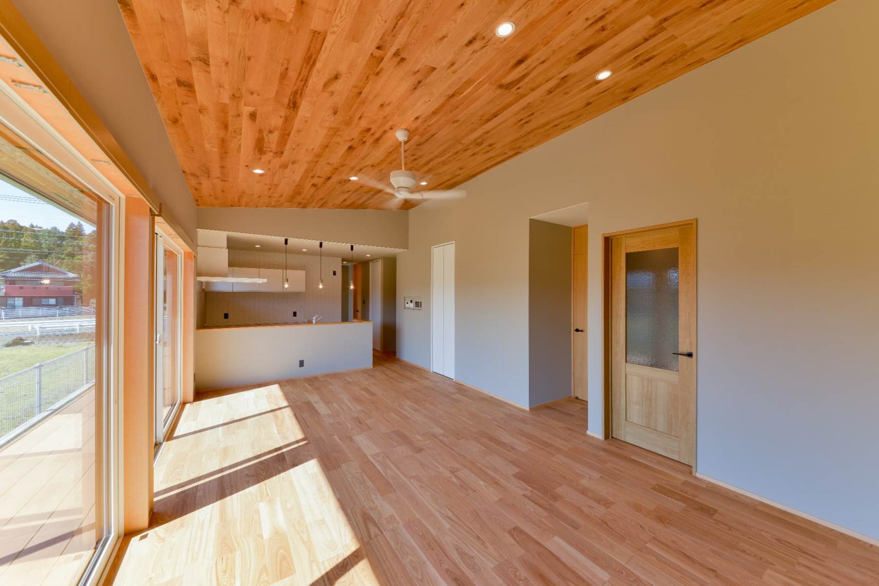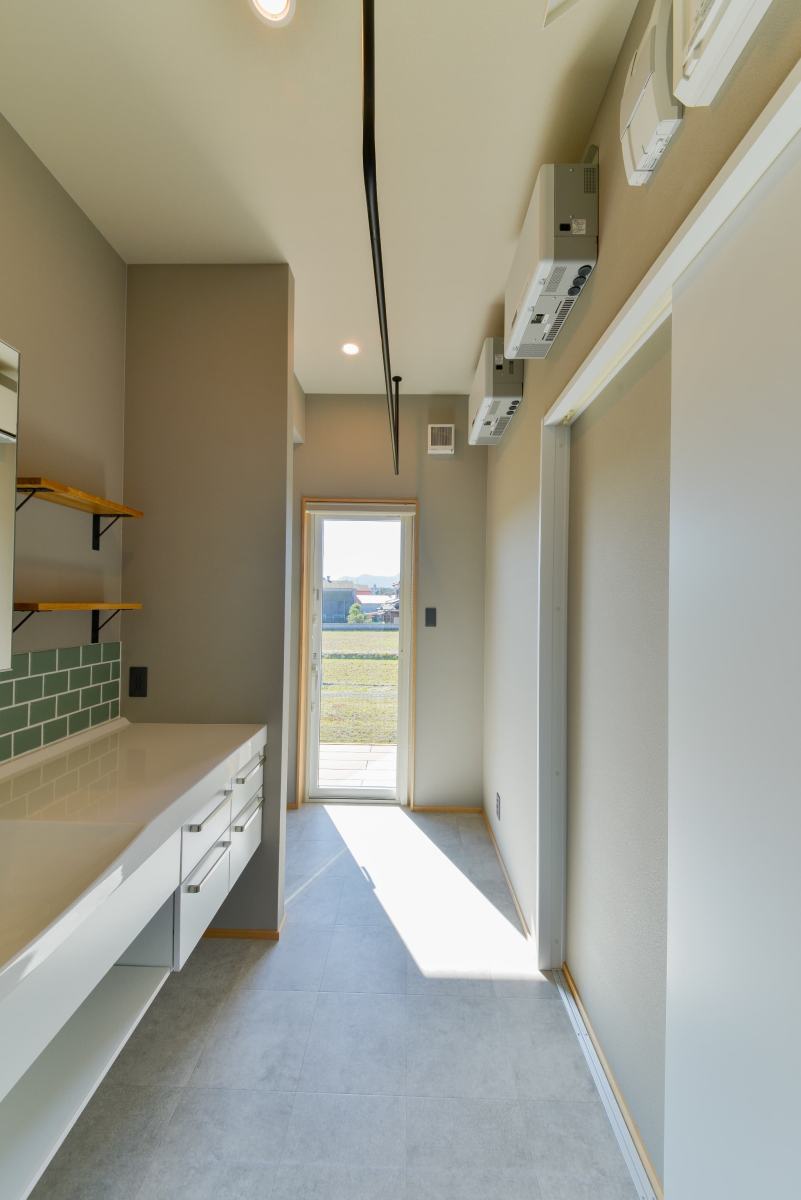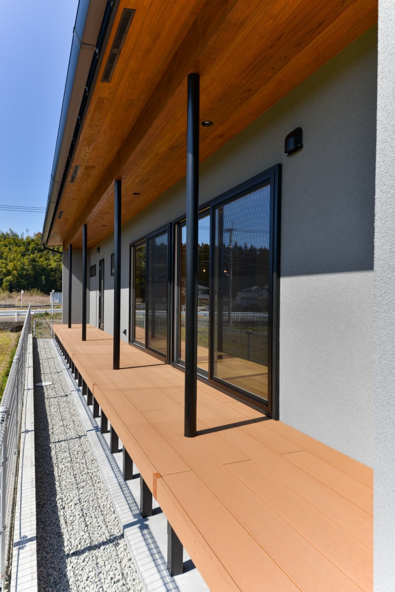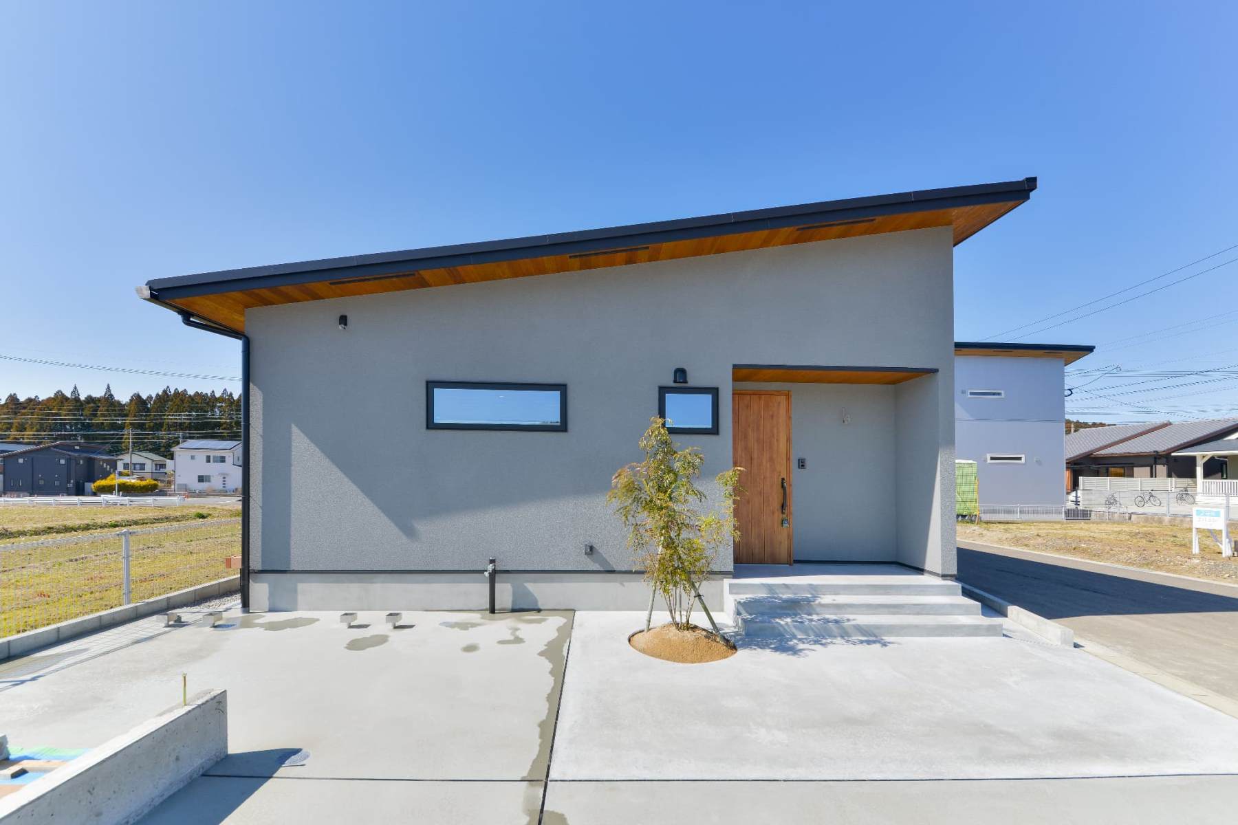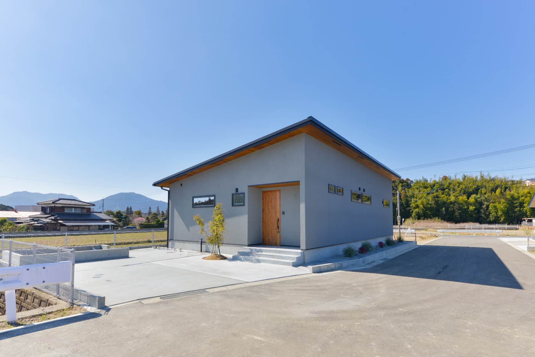 光を受け止めるグレーの平屋