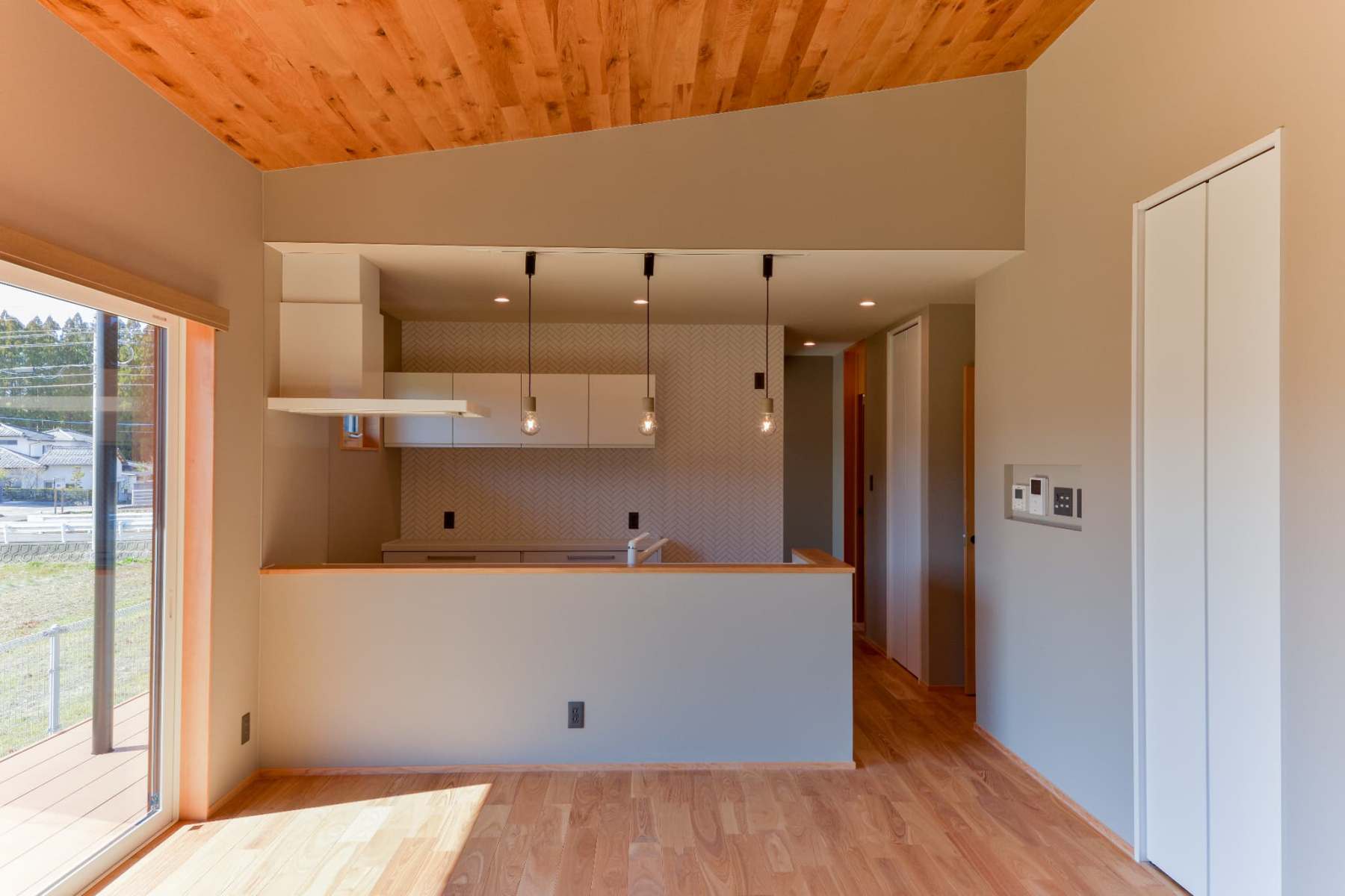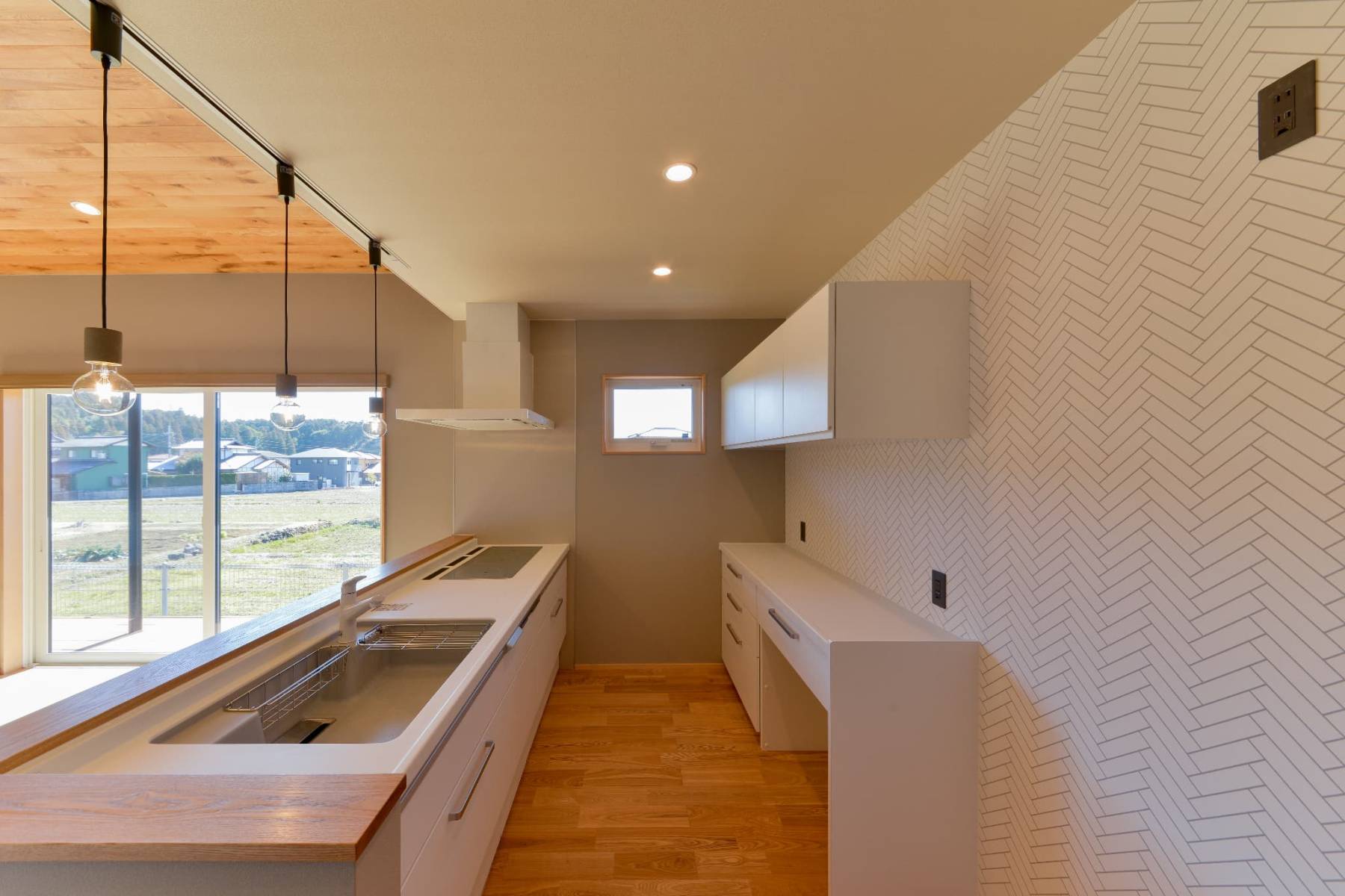 随所に木を用い、冷たさをやわらかく中和