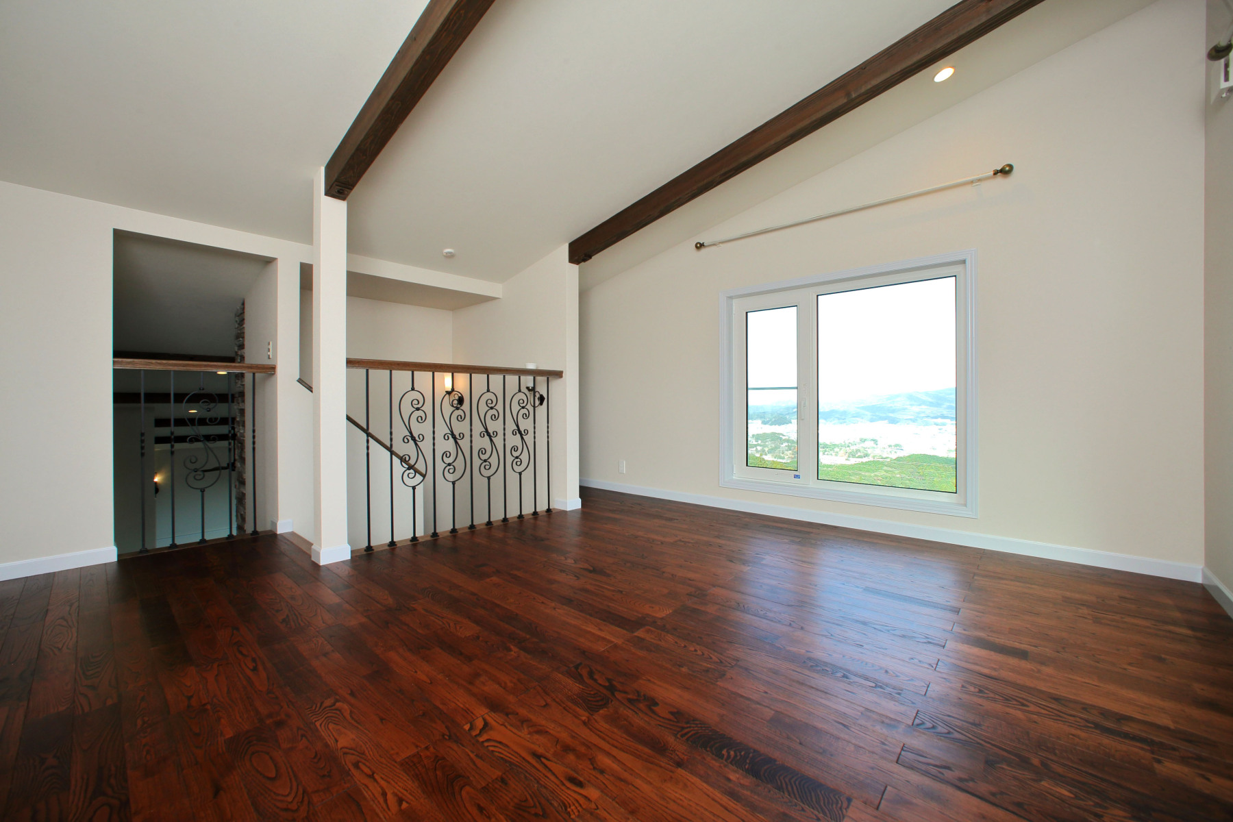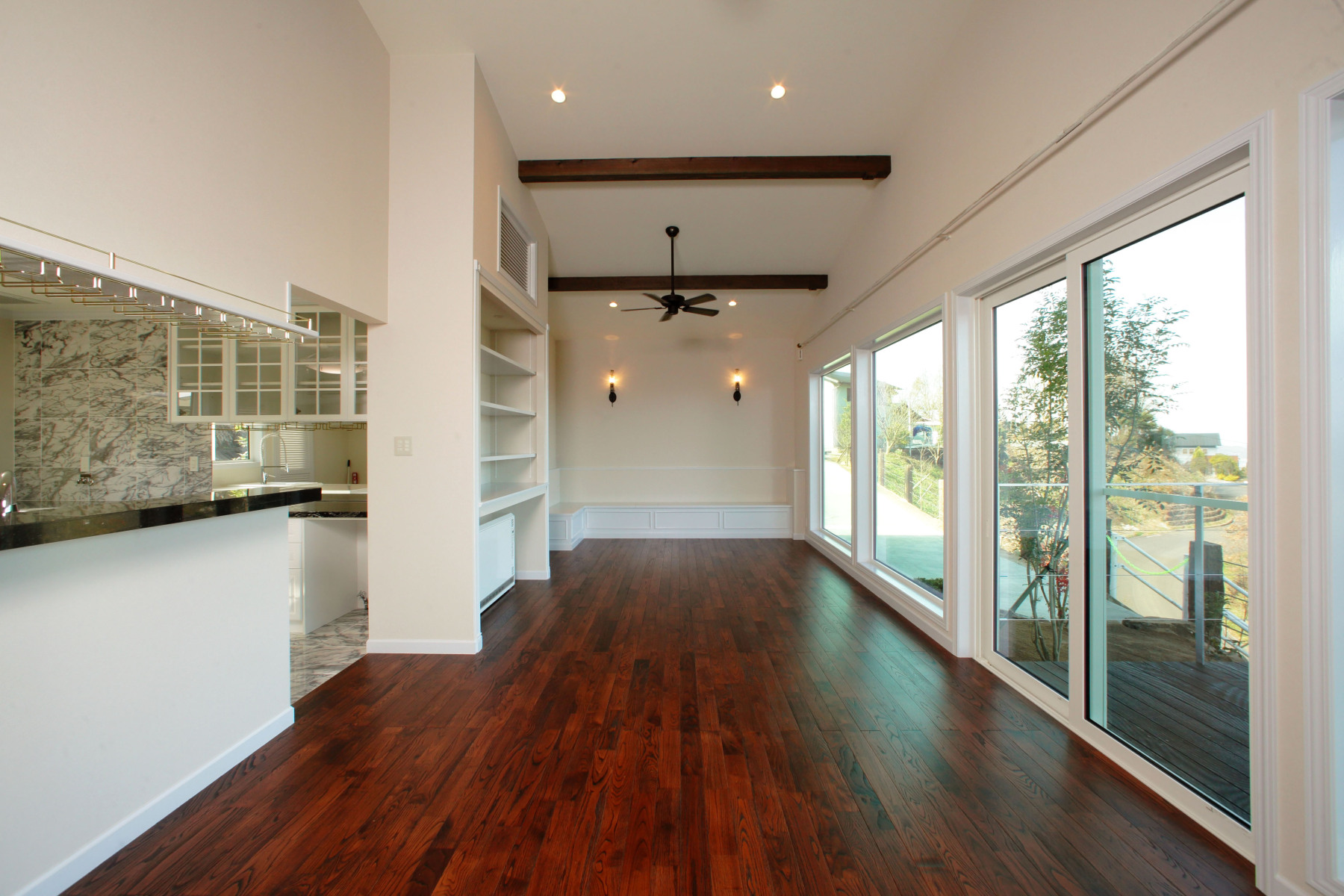 吹き抜けと天梁が開放感を演出するゆとりのリビング
